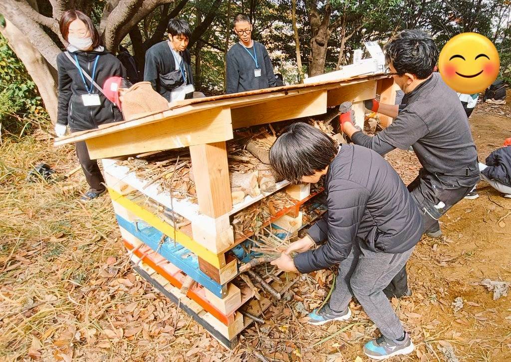 今回は、杉久保小学校の児童とともに、校内の森に「昆虫ホテル」を制作しました。