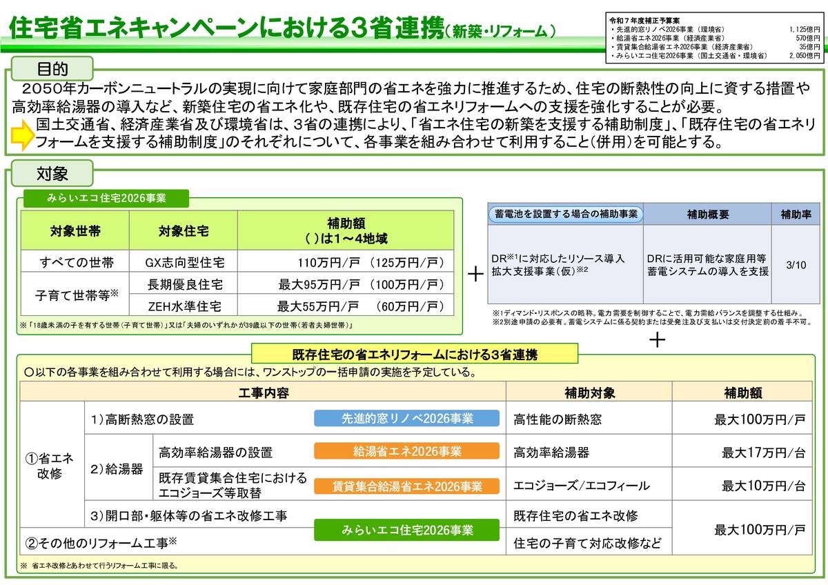 住宅省エネ2026キャンペーンは3つの制度の総称です