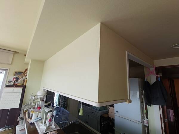 まずキッチンでは、これまでキッチンとリビングを仕切る形になっていたキッチン前の下がり壁を撤去し、開口部を広げました。